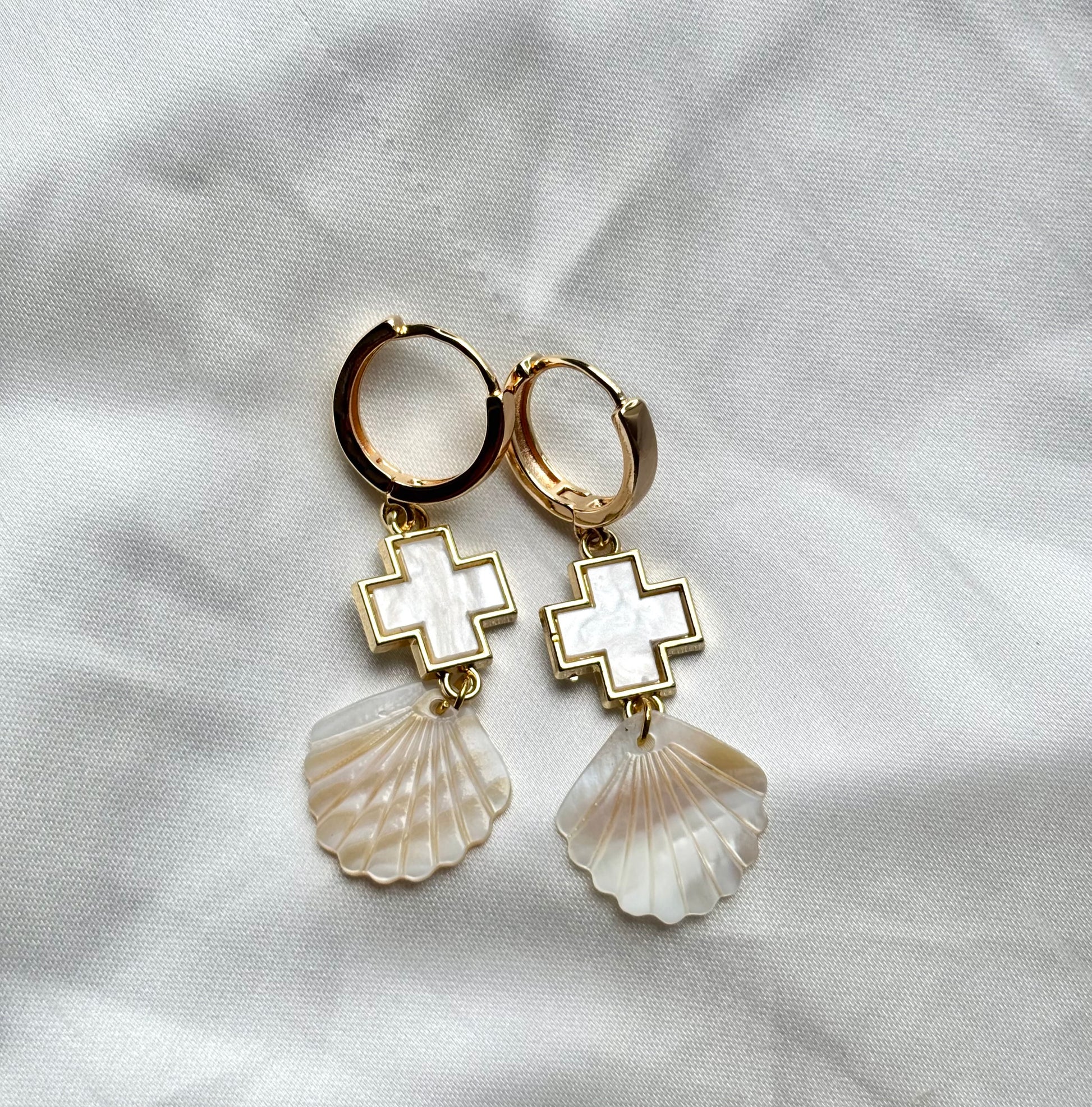 Expertly crafted with a dangle cross design, Julianna Earrings are the perfect accessory for any occasion. Made with genuine shell, these earrings exude a sophisticated elegance. Elevate your style with these timeless pieces.